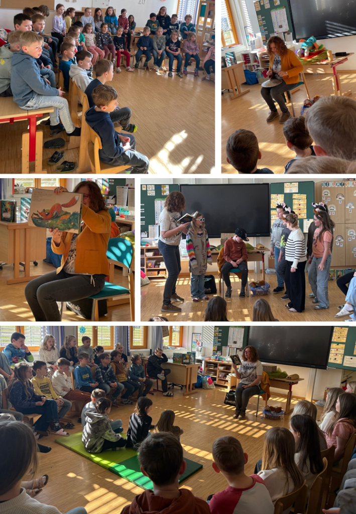 In der Grundstufe 2 stellte Ulli ihr Buch „Das magische Landhaus“ vor. Besonders spannend war, dass einige Kinder selbst in die Rollen der Figuren schlüpfen durften. Als kleine Schauspielerinnen und Schauspieler stellten sie Teile der Geschichte dar und machten die Lesung so zu einem interaktiven und unterhaltsamen Erlebnis.